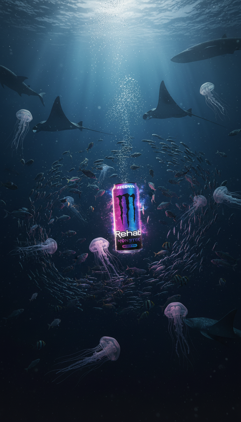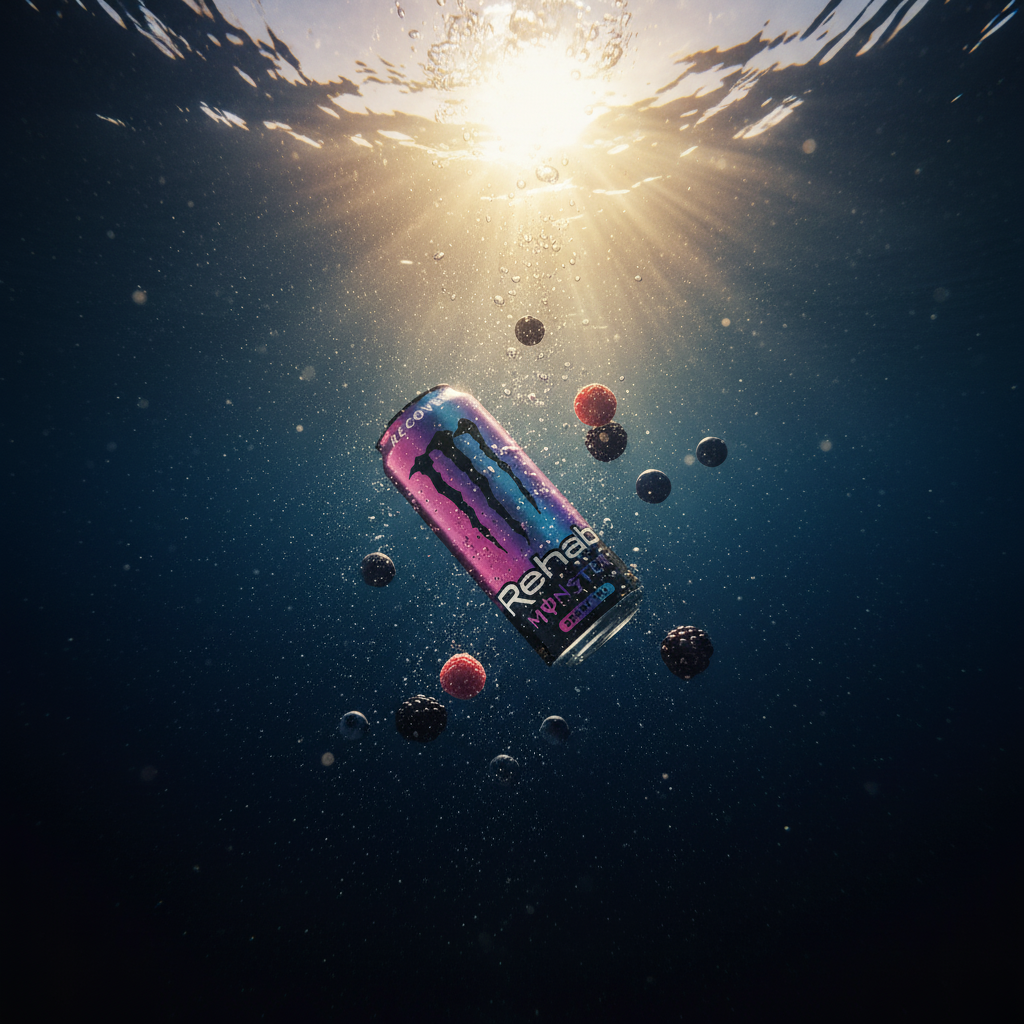No se trata de mostrar una bebida, sino de representar su energía como fenómeno visual.